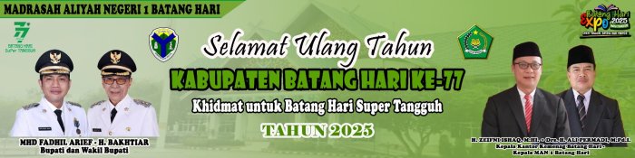Senin, 1 Desember 2025-Keluarga besar MAN 1 Batang Hari menyampaikan ucapan selamat atas Hari Ulang Tahun Kabupaten Batang Hari ke-77 Tahun yang tahun ini mengusung tema Khidmat untuk Batang Hari...