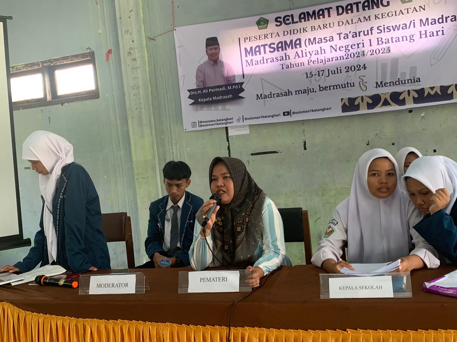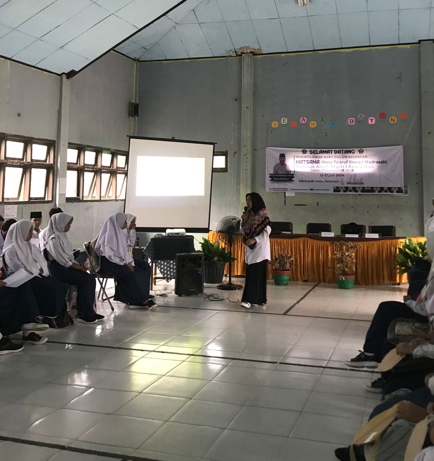 MAN 1 Batanghari- 16 Juli 2024, Hari kedua pelaksanaan Matsama di MAN 1 Batanghari berlangsung dengan penuh antusiasme dan semangat. Acara yang diadakan di aula madrasah pada hari ini menampilkan rangkaian materi yang beragam, dimulai dari sesi Wiyata Mandala yang dipimpin oleh Waka Bidang Kurikulum, H. Feri Hariyadi, M.Ud. Beliau memaparkan segala informasi tentang MAN 1 Batang Hari dengan apik dan mendetail.