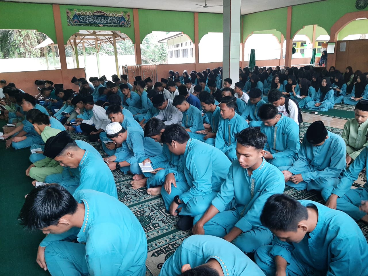 (Muara Bulian) Pada Jumat, 16 Agustus 2024, MAN 1 Batanghari kembali melaksanakan kegiatan keagamaan pagi yang rutin diadakan setiap pekan kedua, ketiga, dan keempat. Kegiatan kali ini berupa pembacaan Surat Al Kahfi yang dilaksanakan di mushalla Al Ikhlas dari pukul 07.15 hingga 08.00.