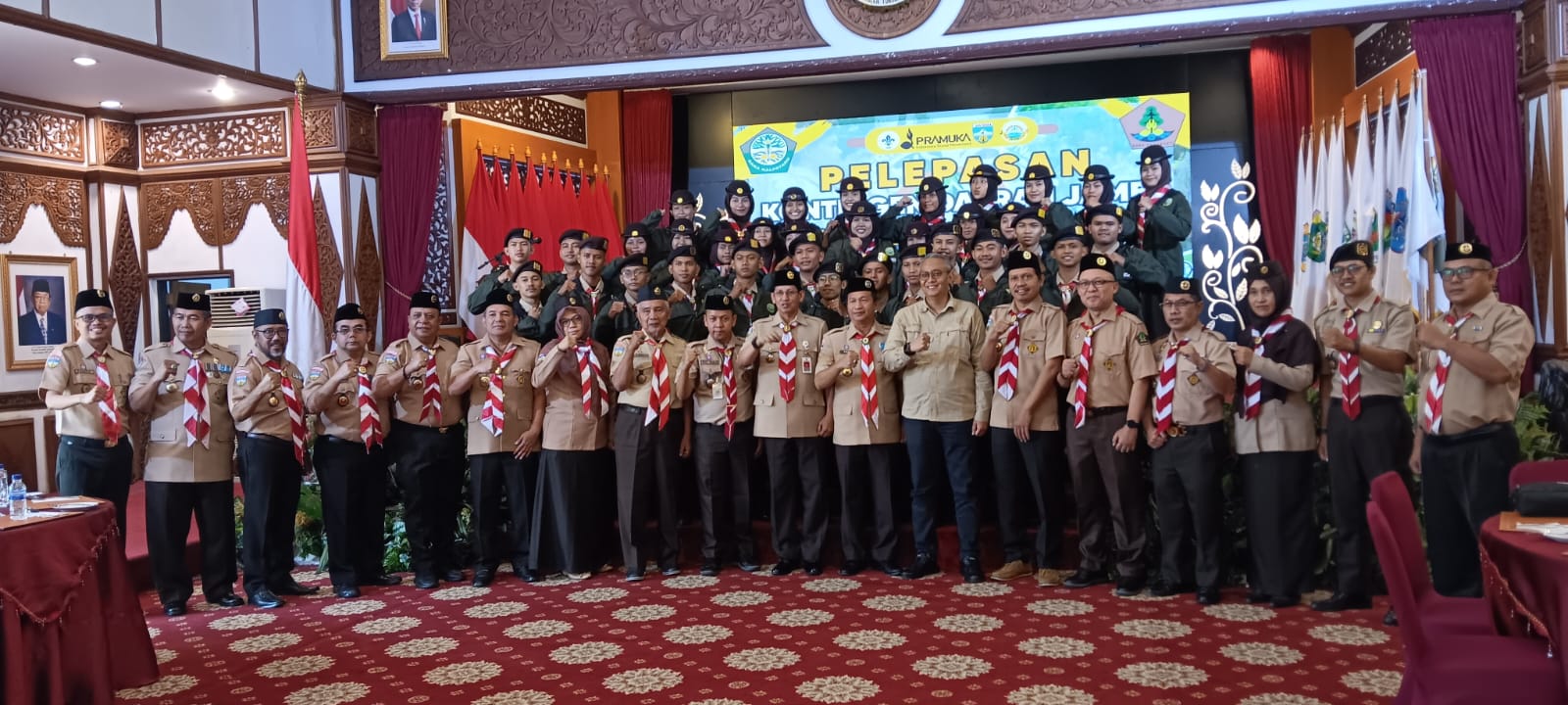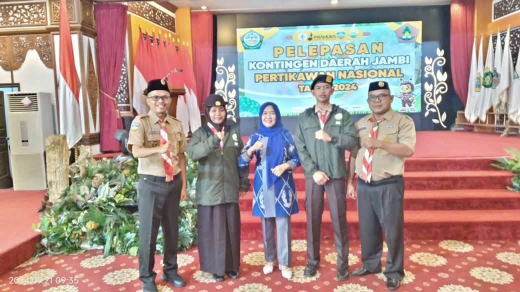 Jambi, 21 September 2024 – Acara pelepasan peserta Perkemahan Bakti Saka Wanabakti (Pertikawan) Nasional tahun 2024 berlangsung khidmat di ruang aula Kwartir Daerah Jambi. Upacara pelepasan ini dihadiri dan dipimpin oleh Kakak Ketua Bidang Organisasi dan Hukum (Orgakum) Gerakan Pramuka Kwartir Daerah Jambi, Jangcik Moza, S.Pd., M.Si., yang mewakili Kama Bida Alharis.