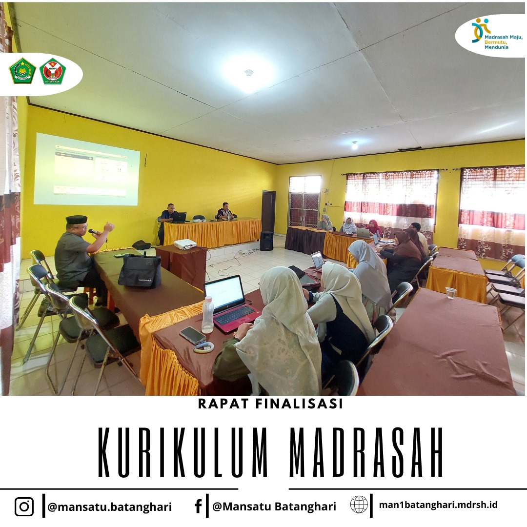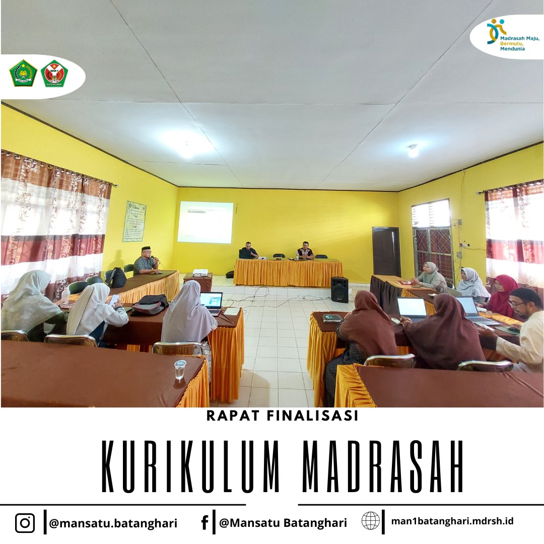 Batanghari* – Madrasah Aliyah Negeri (MAN) 1 Batanghari pada Jumat, 27 September 2024, telah sukses menyelenggarakan acara finalisasi kurikulum madrasah yang berlangsung di ruang pertemuan MAN 1 Batang Hari. Acara ini dihadiri oleh para guru, kepala madrasah, serta perwakilan dari Pengawas Madrasah Kementerian Agama Kabupaten Batanghari. Kegiatan ini bertujuan untuk memantapkan dan menyelaraskan kurikulum yang akan diterapkan di madrasah dalam tahun ajaran mendatang.
