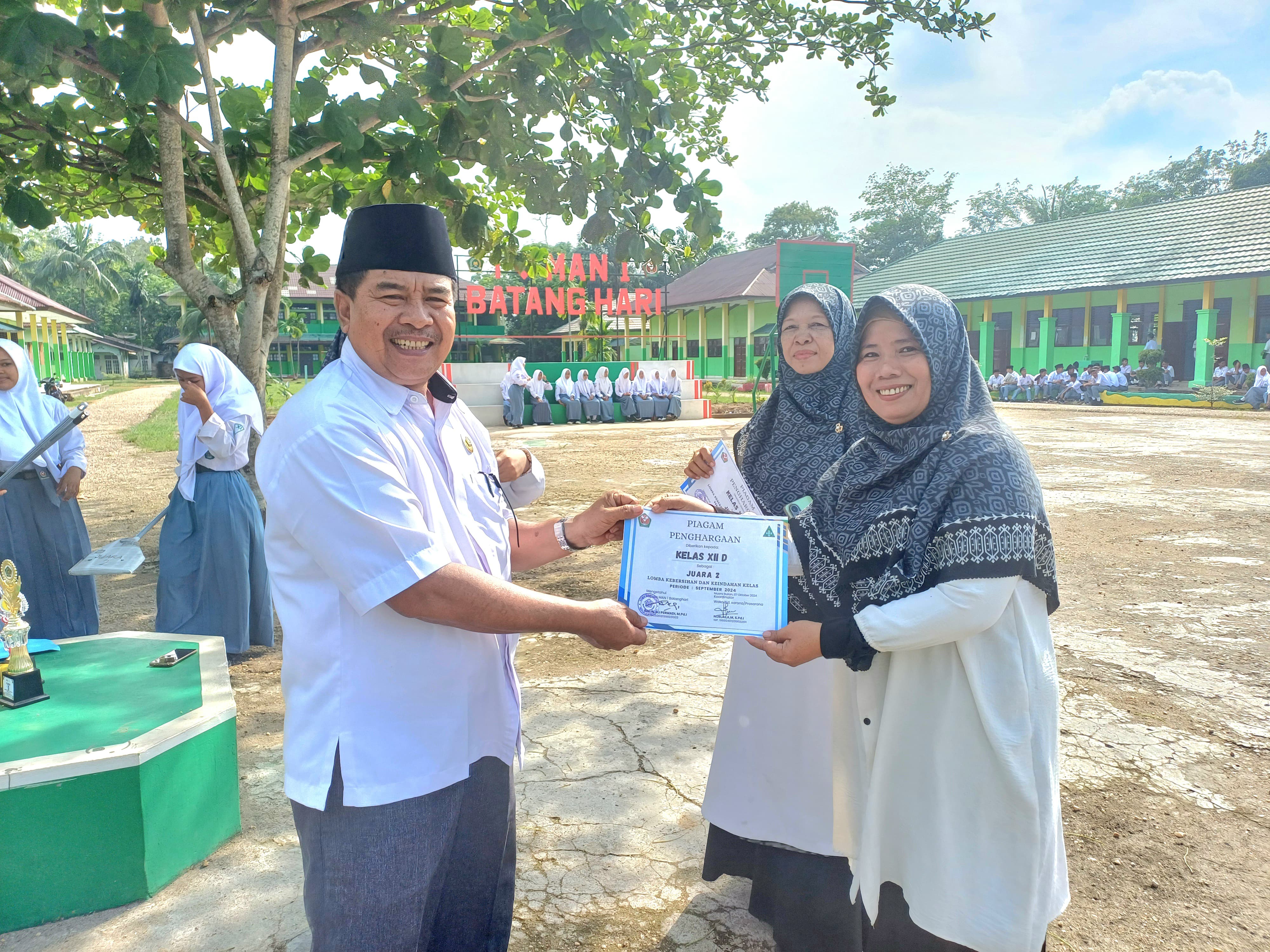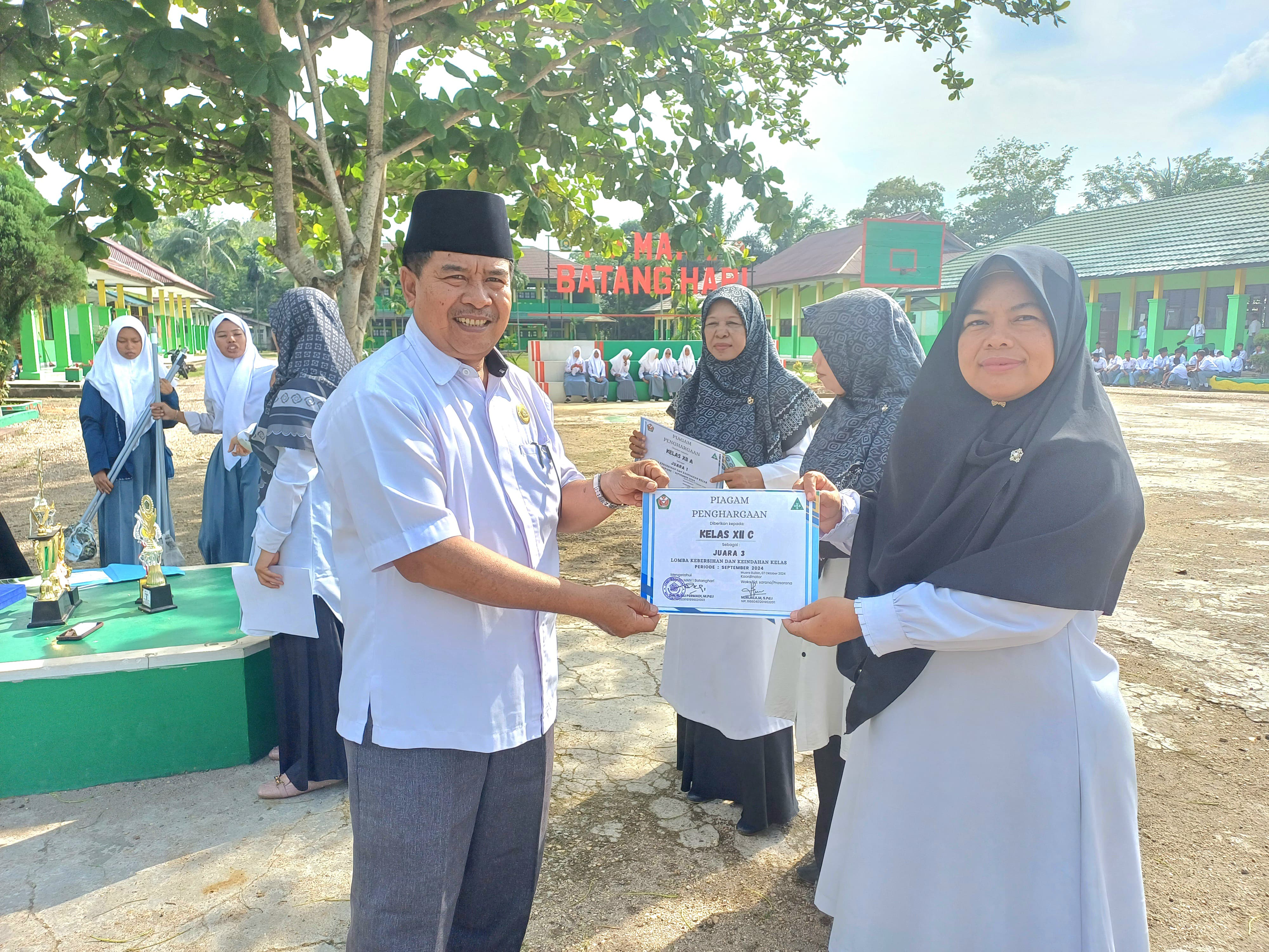 Batang Hari, 7 Oktober 2024 – Madrasah Aliyah Negeri (MAN) 1 Batang Hari dengan bangga mengumumkan pelaksanaan lomba penilaian kebersihan dan keindahan kelas untuk periode September 2024. Lomba ini bertujuan untuk menciptakan lingkungan belajar yang bersih, sehat, dan indah, serta meningkatkan kesadaran siswa tentang pentingnya menjaga kebersihan di sekitar mereka.