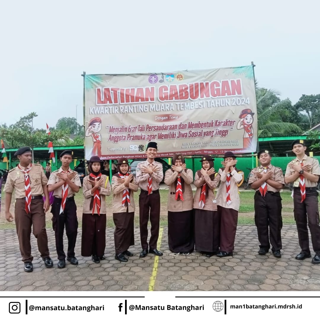 Batang Hari, 12 Oktober 2024 - Kwartir Ranting (Kwaran) Muara Tembesi menggelar kegiatan latihan bersama Tahun 2024 yang diadakan di Buper Orang Kayo Hitam dan Putri Pinang Masak , Pangkalan MAN 2 Batang Hari. Acara ini diikuti oleh berbagai Pangkalan sekolah dan madrasah, termasuk Pangkalan MAN 1 Batang Hari, MAN 2 Batang Hari, MAN 4 Batang Hari, dan Pangkalan SMAN 2 Batang Hari, dengan tujuan mempererat tali persaudaraan antar anggota Pramuka serta membentuk karakter sosial yang kuat.
