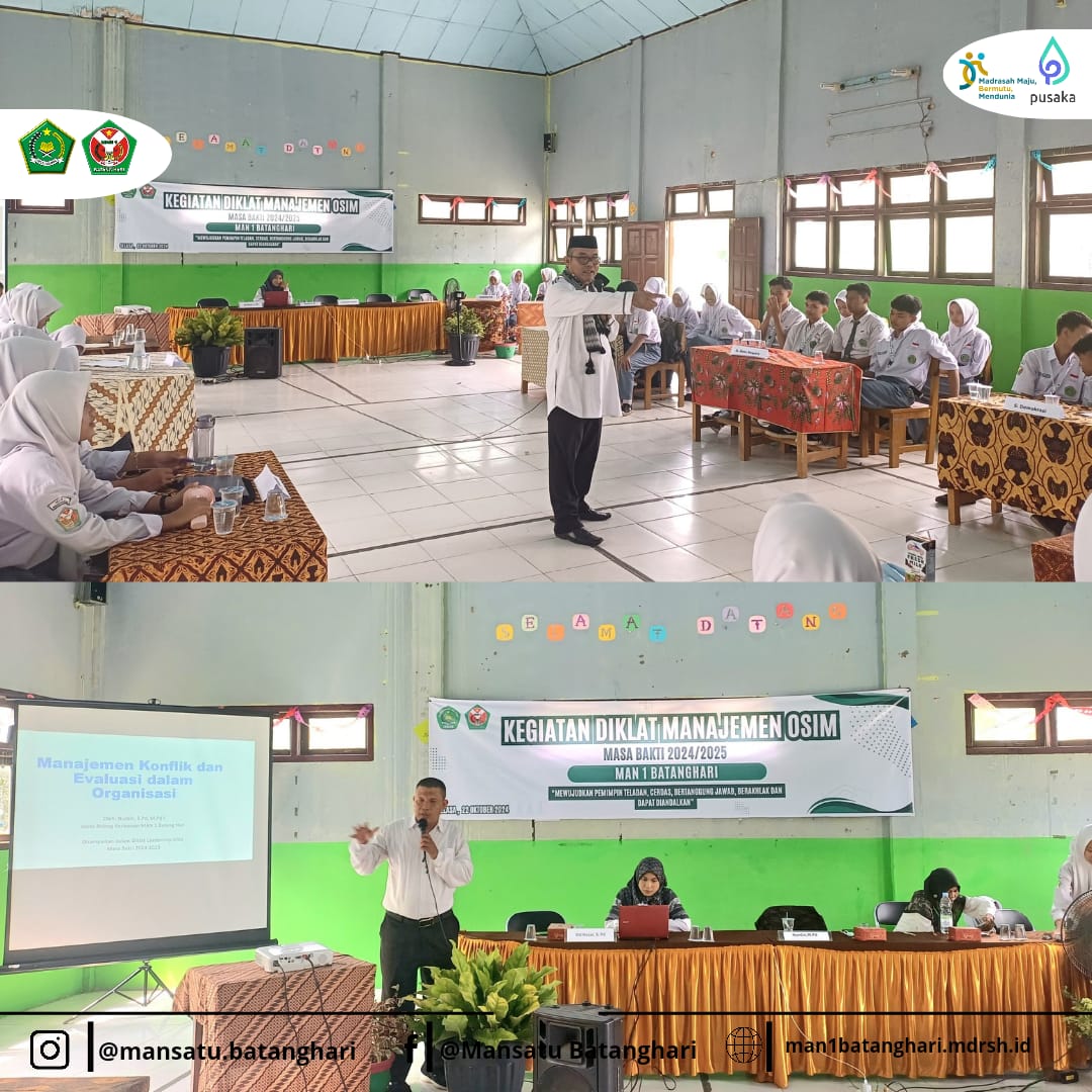 Batang Hari, 22 Oktober 2024 – Diklat Manajemen Organisasi Siswa Intra Madrasah (OSIM) Masa Bakti 2024/2025 di MAN 1 Batang Hari resmi dimulai hari ini. Acara tersebut dibuka oleh Kepala Madrasah yang diwakili oleh Wakil Kepala Bidang Kurikulum, H. Feri Haryadi, S.Ag., M.Ud. Dalam sambutannya, Feri Haryadi menekankan pentingnya pelatihan ini untuk meningkatkan kemampuan manajemen dan kepemimpinan bagi para pengurus OSIM dalam menjalankan tugasnya selama satu tahun ke depan.