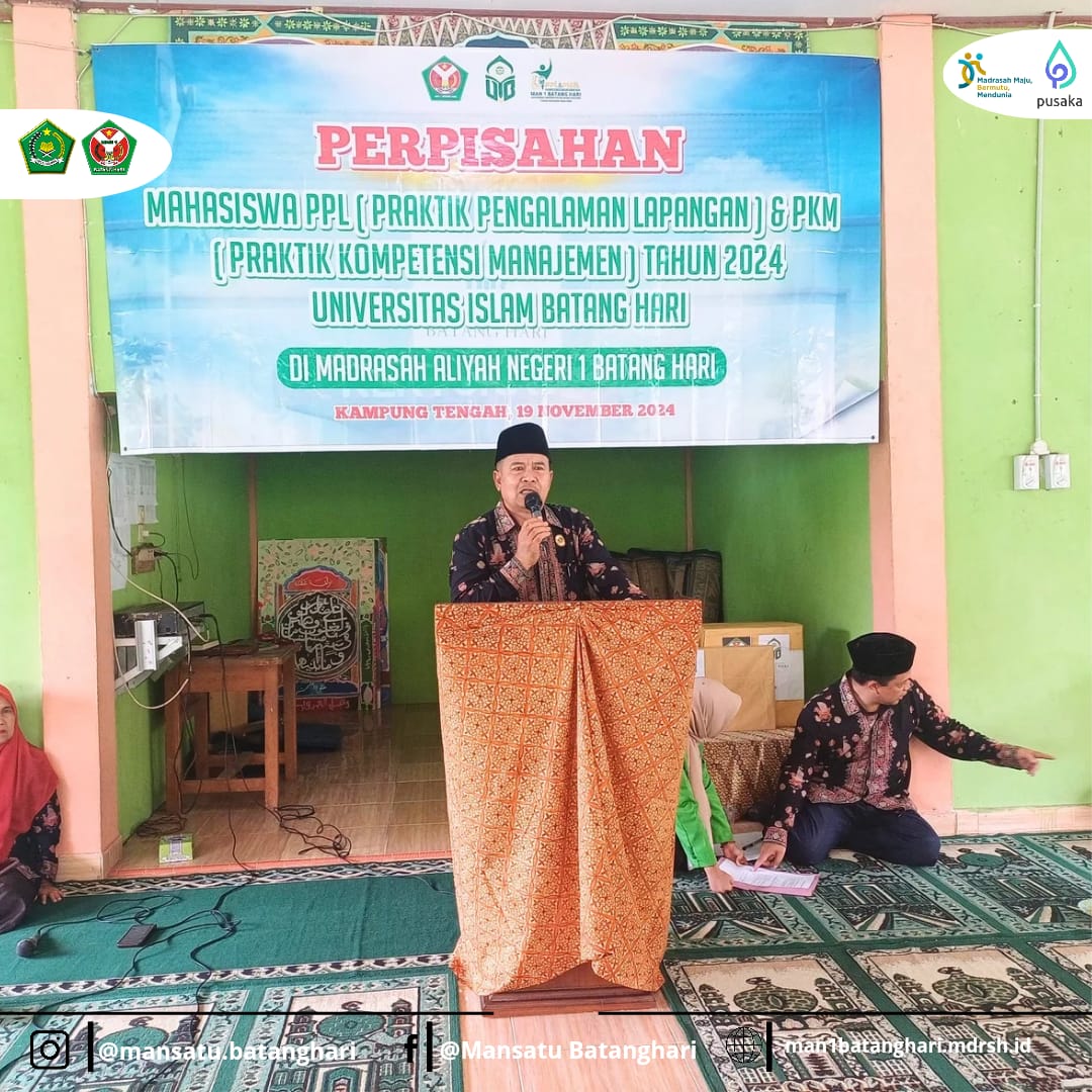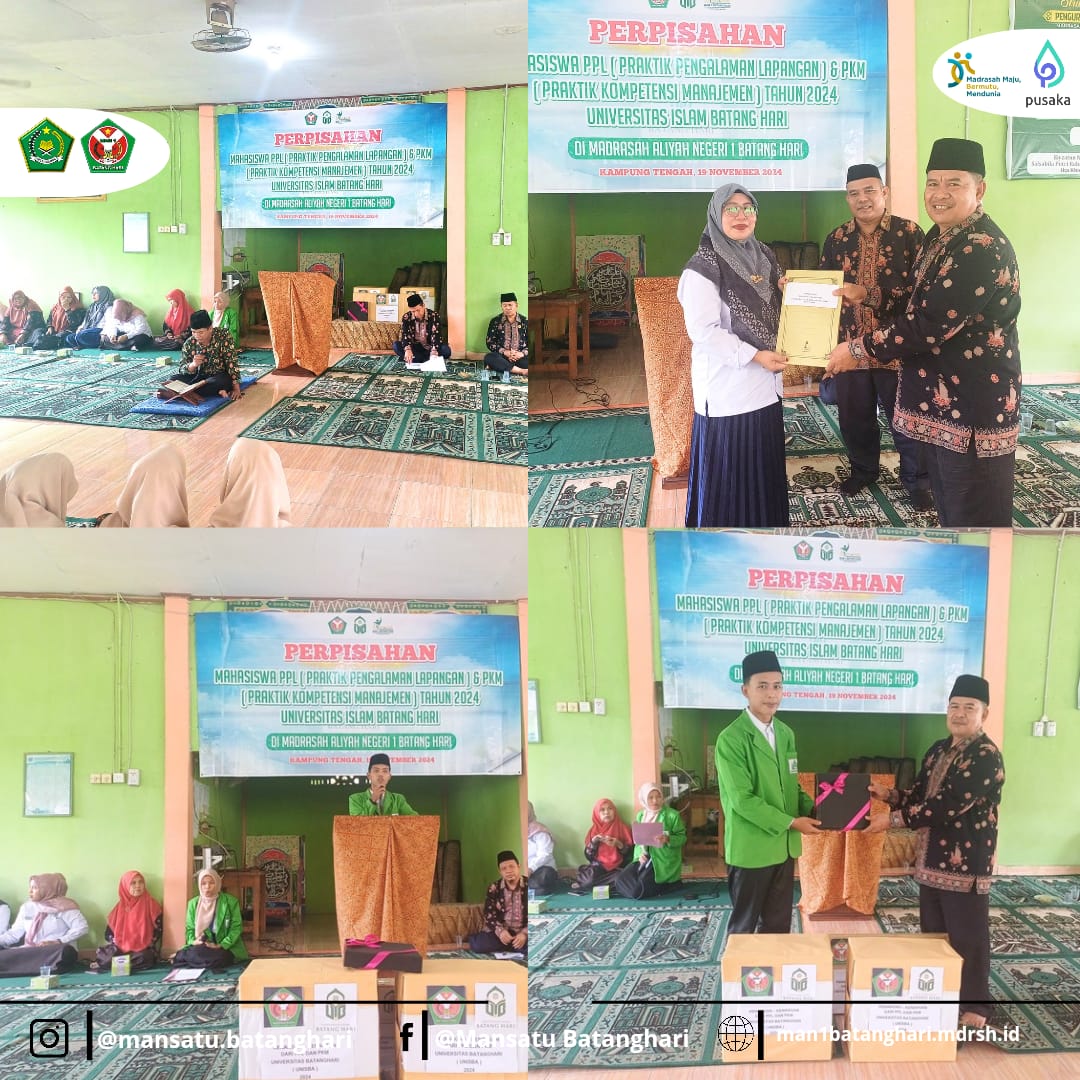Batanghari, 20 November 2024 - Madrasah Aliyah Negeri (MAN) 1 Batanghari menggelar acara perpisahan mahasiswa Praktik Pengalaman Lapangan (PPL) dan Praktik Kuliah Mandiri (PKM) dari Universitas Islam Batanghari (Unisba) setelah mereka melaksanakan kegiatan tersebut selama kurang lebih dua bulan. Acara yang berlangsung khidmat ini dihadiri oleh majelis guru, staf tata usaha, serta siswa-siswi MAN 1 Batanghari di mushala madrasah.