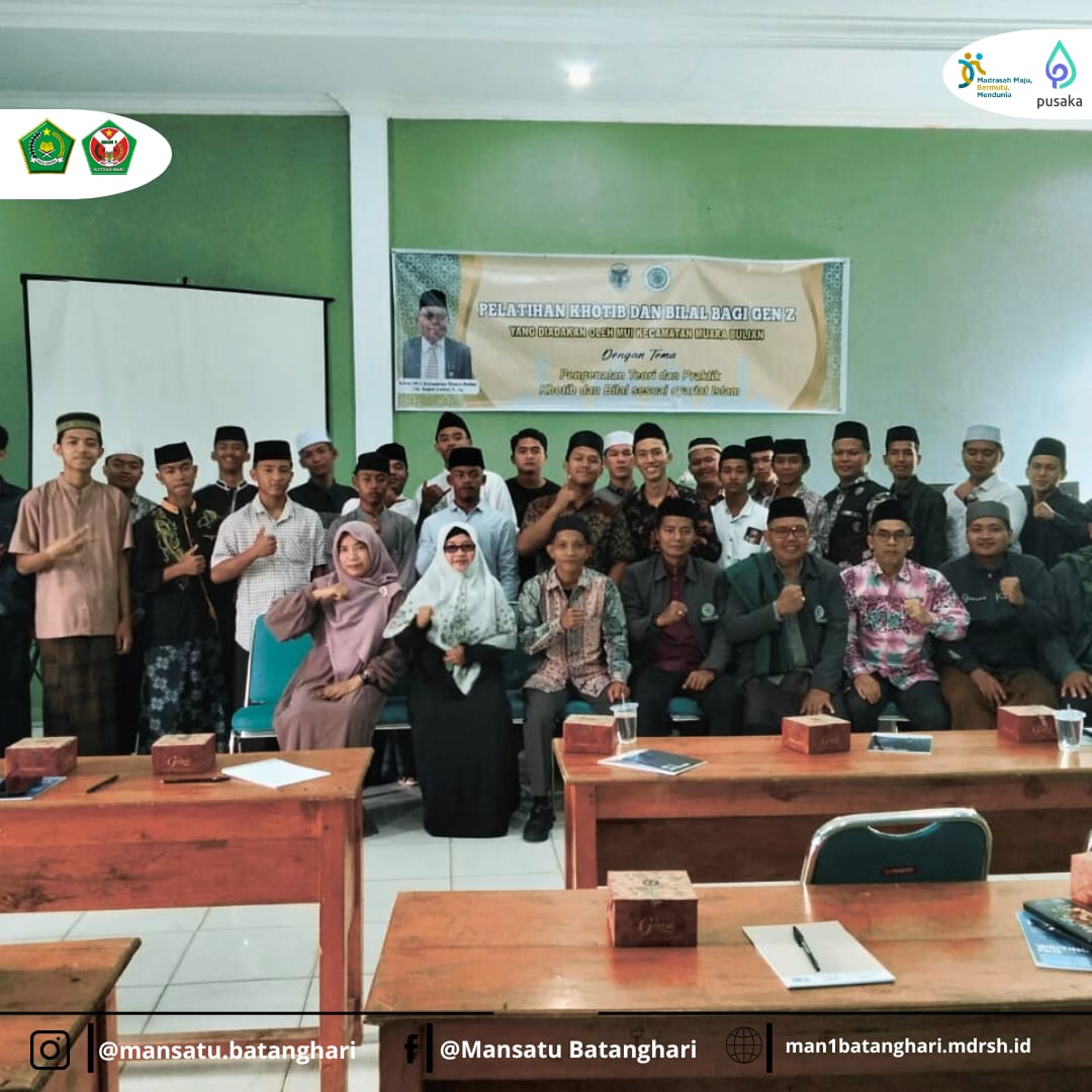 Muara Bulian, 11 Januari 2025 – Dua orang siswa Madrasah Aliyah Negeri (MAN) 1 yaitu Azravi Aras dan Brilian Fathahillah mengikuti pelatihan khotib dan bilal bagi generasi Z yang diselenggarakan oleh Majelis Ulama Indonesia (MUI) Kecamatan Muara Bulian. Kegiatan ini mengangkat tema "Pengenalan Teori dan Praktik Khotib dan Bilal Sesuai Syariat Islam" dan berlangsung di Aula Kantor Camat Muara Bulian pada hari ini.