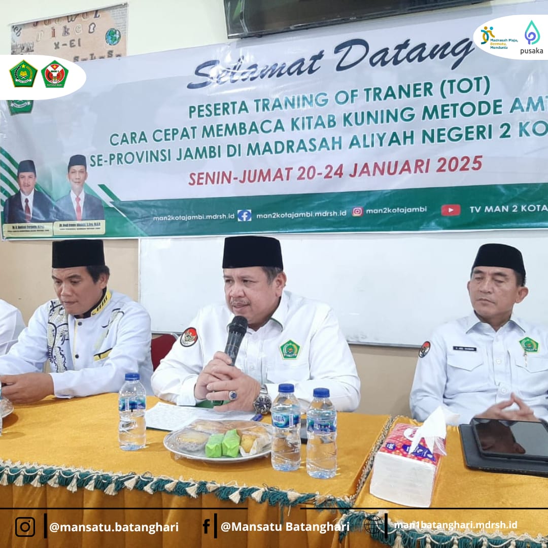 Kepala MAN 2 Kota Jambi, Andi Asfiron, menyampaikan bahwa pelatihan ini bertujuan untuk mempercepat pemahaman cara membaca kitab kuning sebagai bagian dari penguatan kurikulum merdeka belajar di madrasah. Metode Amtsilati yang digunakan merupakan terobosan untuk meningkatkan efektivitas pembelajaran kitab kuning secara praktis dan mendalam.