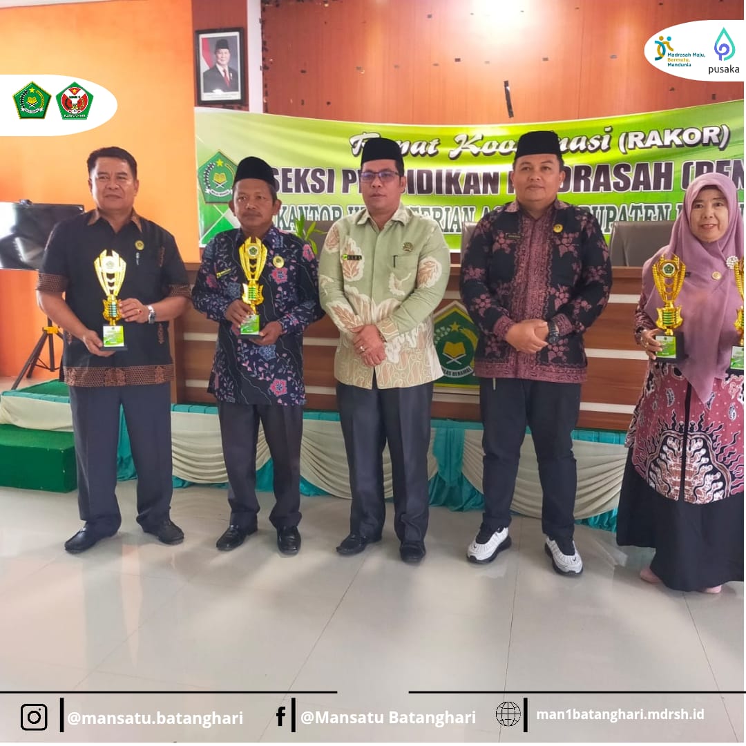 Penghargaan bergengsi ini diberikan dalam acara tasyakuran yang berlangsung di Kantor Wilayah (Kanwil) Jambi. Momen penuh kebanggaan ini semakin lengkap dengan penyerahan penghargaan secara resmi kepada Kepala Madrasah dalam acara Rapat Koordinasi Pendidikan Madrasah (Rakor Penmad) yang diselenggarakan oleh Kementerian Agama Kabupaten Batanghari, pada Kamis, 30 Januari 2025.