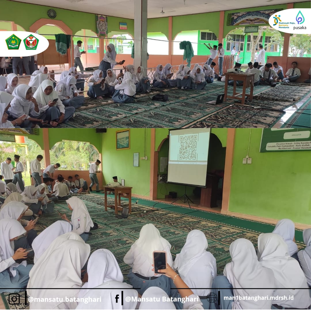 Batang Hari, 24 Februari 2025 – Sebanyak 67 siswa MAN 1 Batang Hari mengikuti simulasi Asesmen Madrasah pada Senin, 24 Februari 2025. Simulasi ini dilaksanakan di mushala madrasah dengan menggunakan aplikasi Exam Browser di ponsel masing-masing. Kegiatan ini bertujuan untuk membiasakan siswa dengan sistem ujian berbasis digital yang akan digunakan dalam asesmen madrasah sebenarnya.