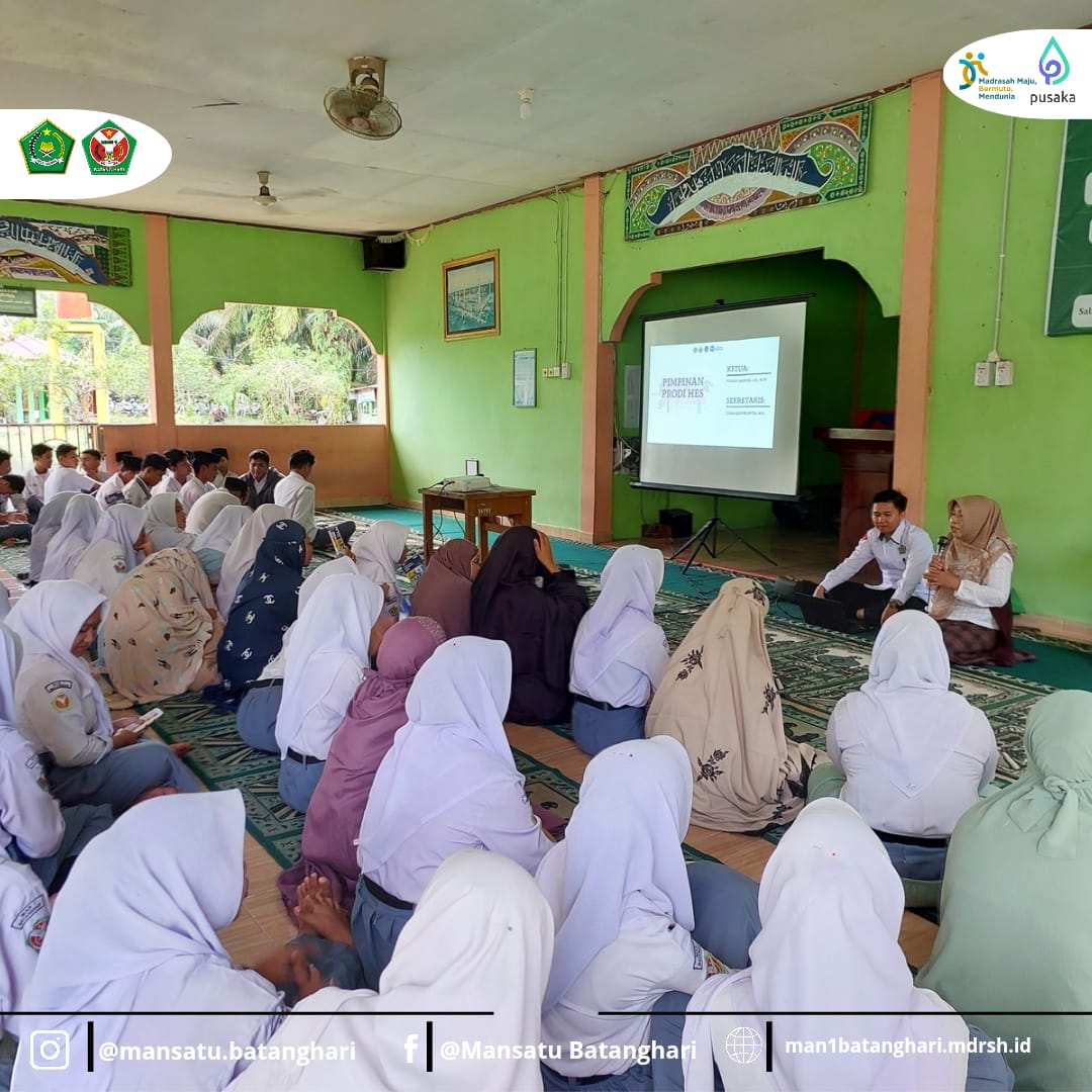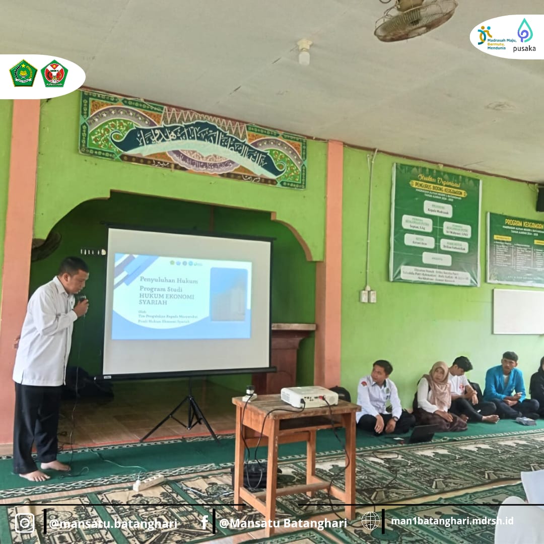 Batanghari, 24 Februari 2025 – Program Studi Hukum Ekonomi Syariah Universitas Islam Negeri Sultan Thaha Saifuddin (UIN STS) Jambi menggelar sosialisasi di Madrasah Aliyah Negeri (MAN) 1 Batanghari. Kegiatan yang berlangsung di Musholla Al-Ikhlas ini diikuti oleh siswa-siswi kelas XII sebagai bagian dari upaya memberikan wawasan mengenai pendidikan tinggi, khususnya dalam bidang Hukum Ekonomi Syariah.