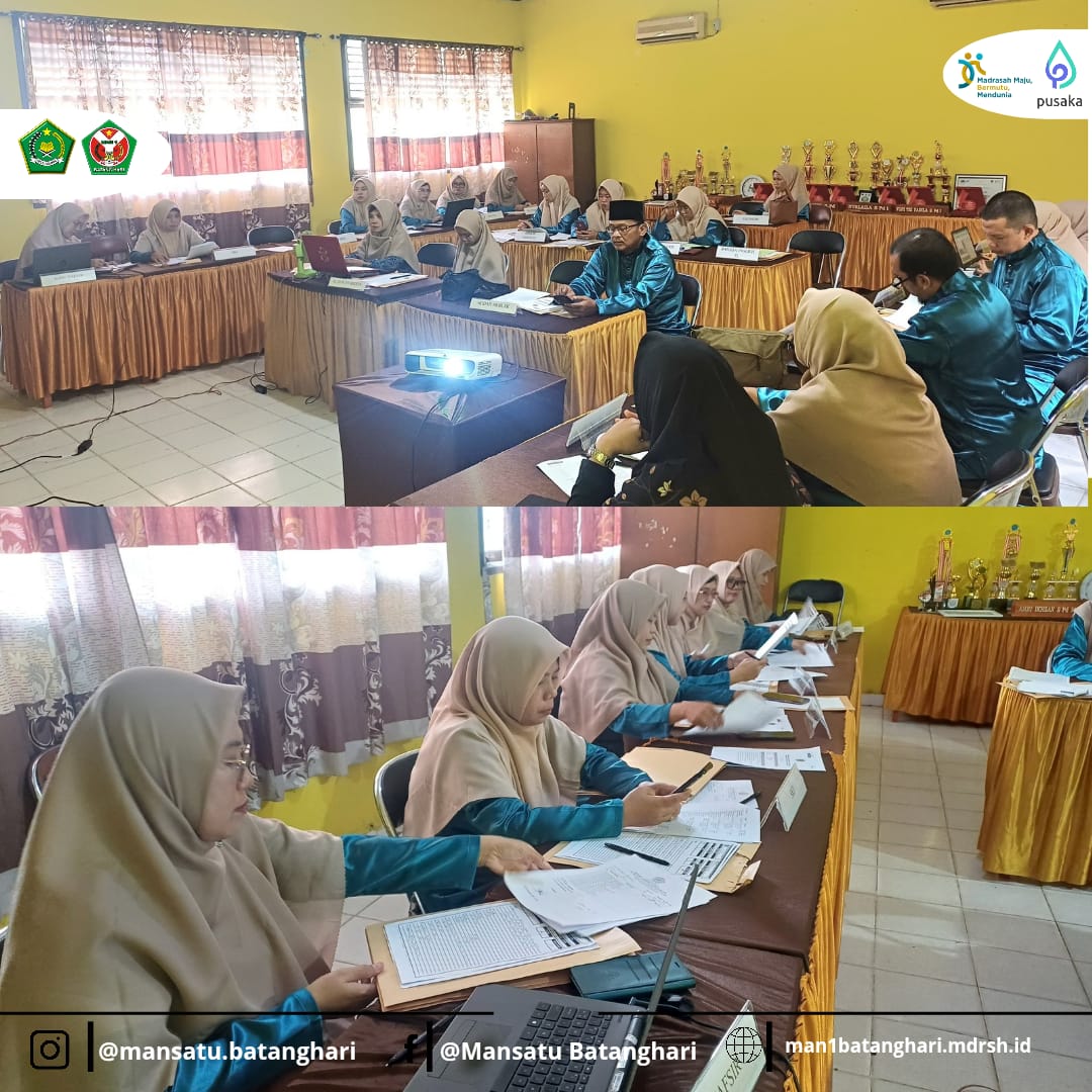 Batang Hari, 20 Maret 2025 - Hari ini, telah dilaksanakan rapat evaluasi ujian madrasah serta pengoreksian lembar jawaban ujian madrasah yang berlangsung di ruang pertemuan MAN 1 Batang Hari. Acara ini dibuka oleh Wakil Kepala Madrasah Bidang Kurikulum, H. Feri Hariadi, M.Ud, yang dalam sambutannya menyampaikan agenda rapat hari ini yaitu evaluasi Ujian Madrasah, pembahasan mengenai hari libur guru dan tenaga pendidikan yang disampaikan oleh Kepala Madrasah, Drs. H. Ali Permadi, M.Pd.I. Dalam rapat ini Pengawas Madrasah, Amri Ikhsan, M.Pd diundang untuk menjelaskan tentang pengisian E- Kinerja 2025.