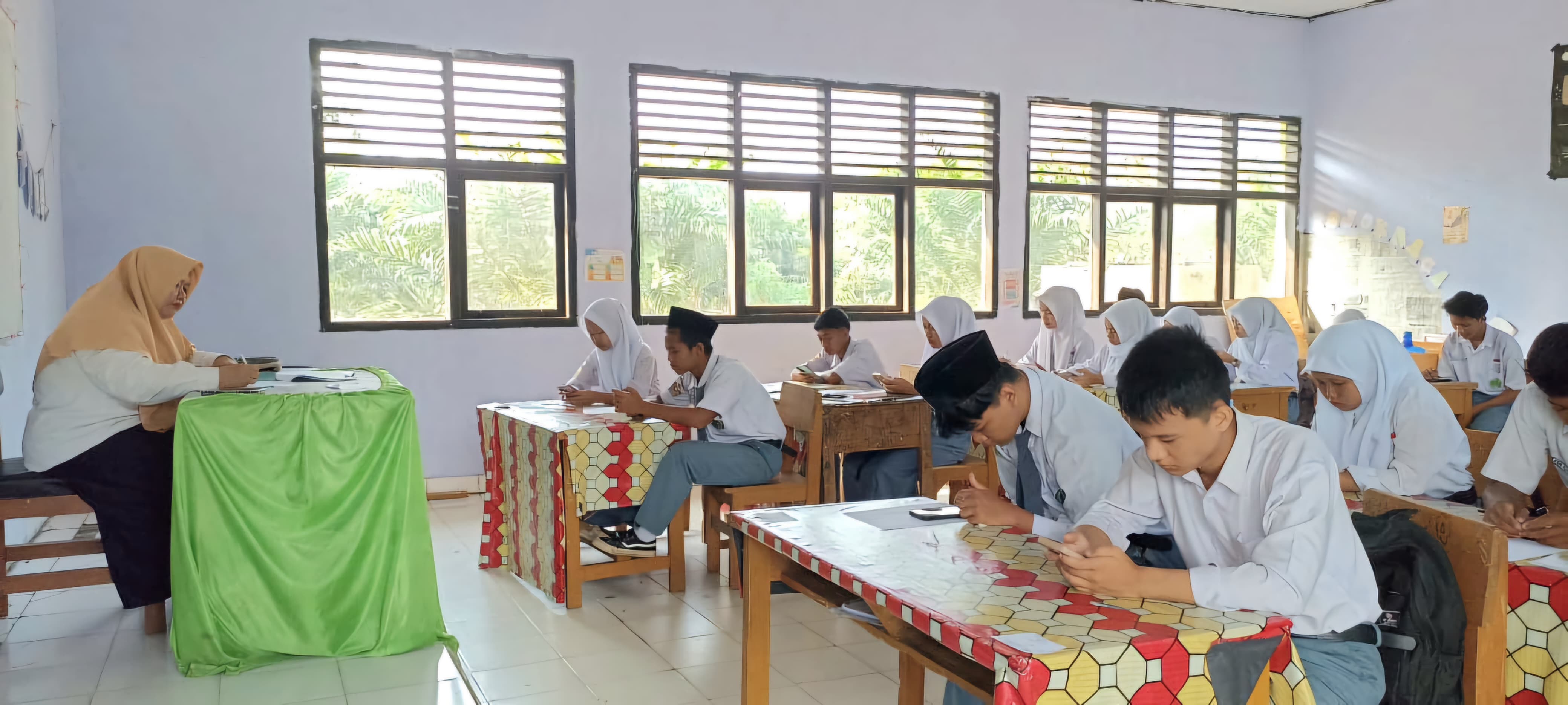 Hari pertama asesmen yang berlangsung pada Senin (2/6), diisi dengan mata pelajaran Bahasa Indonesia untuk seluruh jenjang, Muatan Lokal (Mulok) untuk kelas X, Bahasa Inggris Tingkat Lanjut untuk kelas XI, serta mata pelajaran Al-Qur’an Hadits. Siswa tampak serius mengerjakan soal-soal yang telah disusun sesuai dengan level kognitif dan capaian pembelajaran masing-masing.