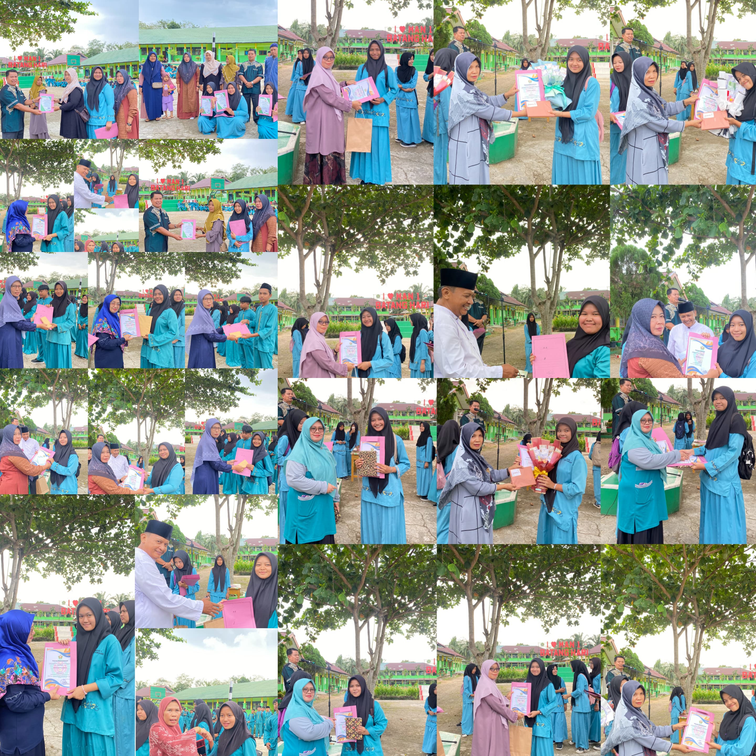 Batang Hai, Jumat, 20 Juni 2025 - MAN 1 Batanghari menggelar apel penutupan classmeeting yang sekaligus dirangkaikan dengan pengumuman pemenang lomba serta penyerahan rapor siswa. Apel dimulai pada pukul 09.00 WIB dan dipimpin langsung oleh Kepala Madrasah Drs. H. Ali Permadi, M.Pd.I. Dalam amanatnya, beliau menyampaikan apresiasi atas semangat sportivitas siswa selama mengikuti berbagai lomba classmeeting dan berharap capaian siswa tidak hanya dalam akademik, tetapi juga dalam bidang non-akademik.