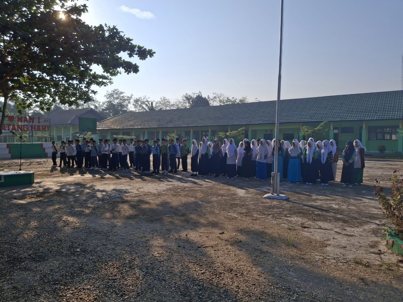 Apel pembukaan dilaksanakan di halaman madrasah dan dipimpin langsung oleh Wakil Kepala Madrasah bidang Kesiswaan,Nurdin, M.Pd.I. Dalam arahannya, beliau menyampaikan pentingnya integrasi antara kemampuan akademik dan kecakapan religius dalam membentuk profil siswa MAN 1 Batang Hari yang unggul dan berkarakter.