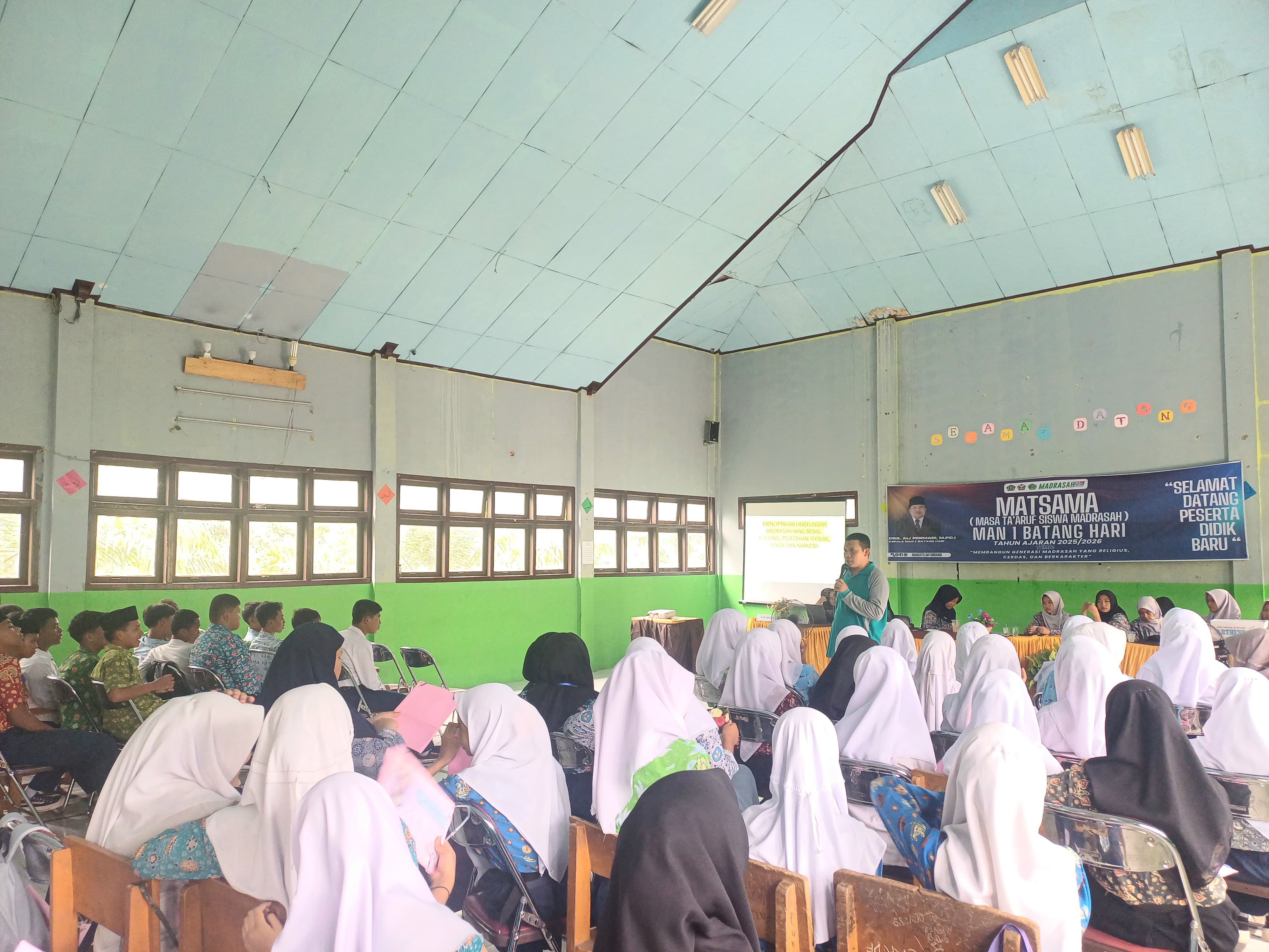 Batang Hari – Kegiatan Masa Ta’aruf Siswa Madrasah (Matsama) MAN 1 Batang Hari hari kedua pada Selasa, 15 Juli 2025 berlangsung dengan penuh semangat dan antusiasme dari peserta didik baru. Bertempat di aula madrasah, kegiatan ini diisi dengan materi-materi penting yang membentuk karakter dan wawasan kebangsaan generasi muda sejak dini.