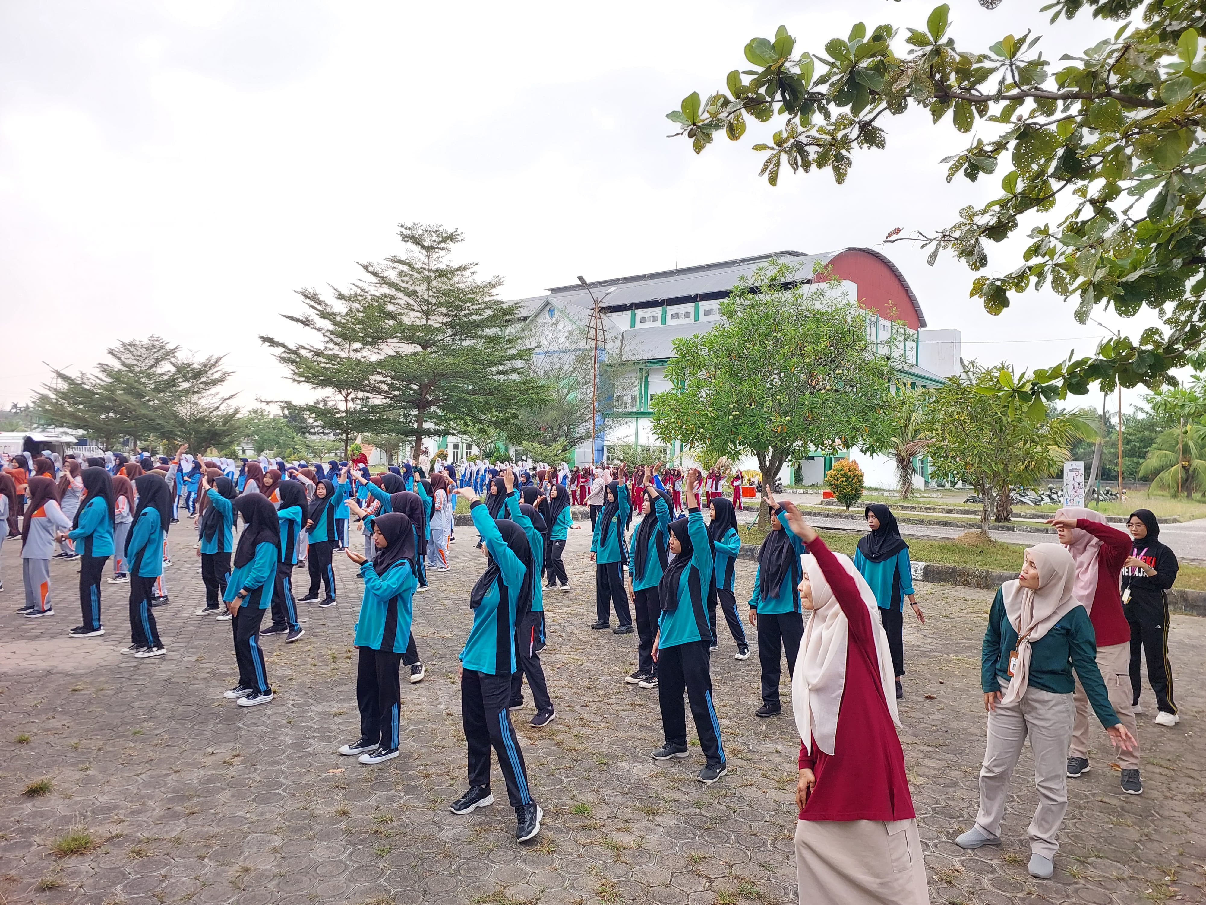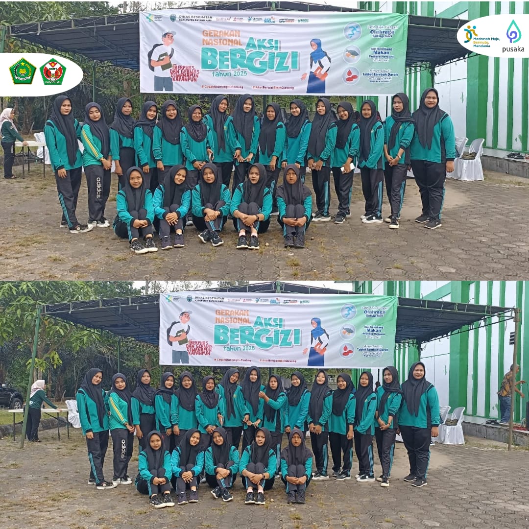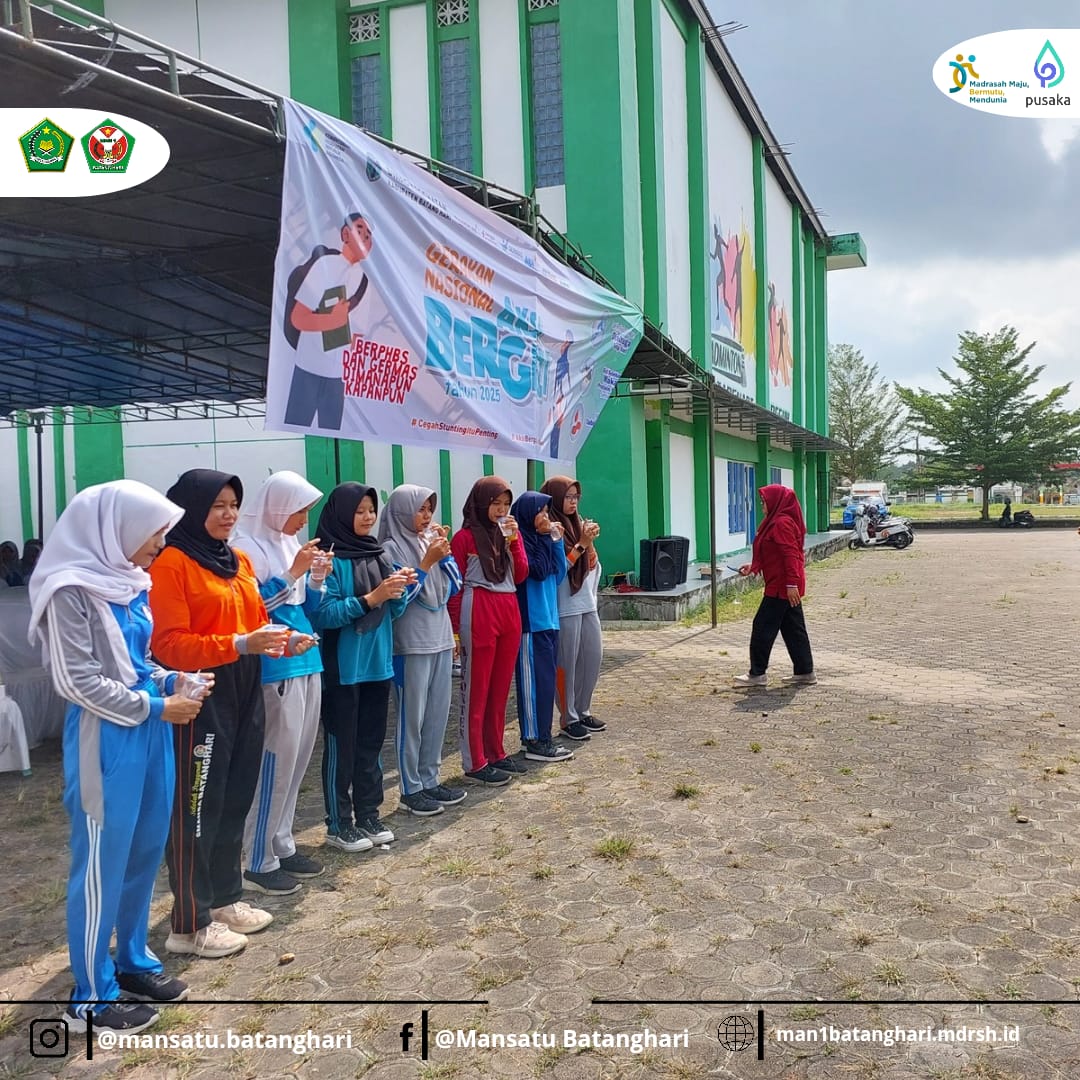Batang Hari - Sebanyak 25 siswi MAN 1 Batang Hari didampingi oleh Waka Humas,Yofi Tri Fadila, S. Pd dan Pembina OSIM, Ika Hesty Anggraini, S. Pd, mengikuti kegiatan Gerakan Nasional Aksi Bergizi Tahun 2025 yang diselenggarakan oleh Kementerian Kesehatan melalui Dinas Kesehatan Kabupaten Batang Hari. Kegiatan ini berlangsung meriah dan penuh semangat di halaman Bulian Sport Center pada Kamis pagi, dimulai pukul 07.00 WIB.