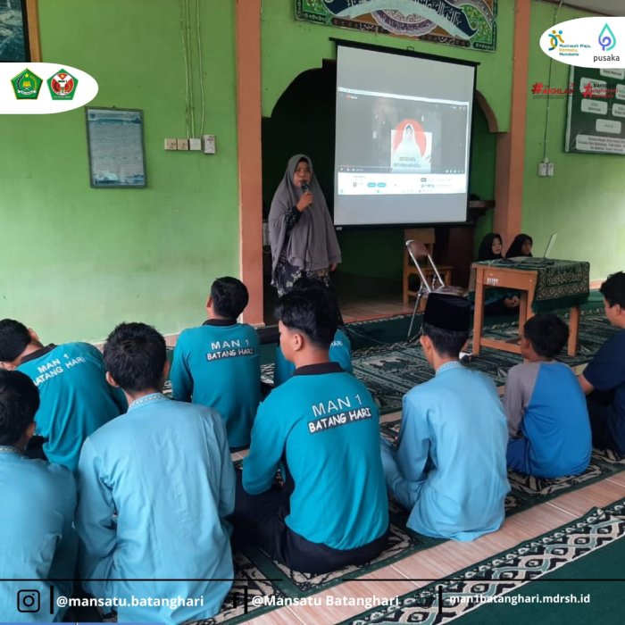 Acara dimulai pukul 07.15 WIB di Mushalla Al Ikhlas MAN 1 Batanghari dengan dipandu oleh Ecanur Hasanah, siswi kelas XII.A, sebagai pembawa acara. Sebelum masuk pada kajian inti, Ustadzah Sri Wahyuni mengajak seluruh peserta didik dan guru untuk bersama-sama melantunkan shalawat kepada Nabi Muhammad Shallallahu ‘Alaihi Wasallam.