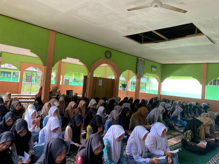 Batang Hari, (03/09) – Suasana khidmat menyelimuti Mushalla Al-Ikhlas MAN 1 Batanghari pada pagi ini saat seluruh siswa, guru, dan karyawan menggelar kegiatan pembacaan Surat Yasin, tahlilan, dan doa bersama. Kegiatan tersebut dilaksanakan sebagai bentuk belasungkawa dan doa untuk almarhumah Nyimas Rayhana Althafunnisa, siswi kelas XI.A yang berpulang ke rahmatullah.