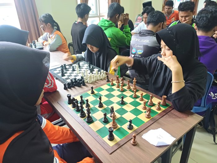Batang Hari, 23 Agustus 2025 - Sejumlah siswa-siswi dari Madrasah Aliyah Negeri (MAN) 1 Batang Hari yaitu Rafa Ersa kelas XA ,Viola Arumdani XD, Hanifa Nuraziza XIA, Nazar Agusta XA, dan Kurnia Sandi XID didampingi oleh Heni Murdianti dan Tiara Sobrina, turut serta dalam perlombaan catur tingkat Kabupaten Batang Hari yang digelar oleh Persatuan Catur Seluruh Indonesia (PERCASI) Batang Hari. Kegiatan ini berlangsung di Gedung KONI Batang Hari dan diikuti oleh ratusan peserta dari berbagai madrasah dan sekolah.