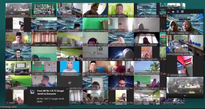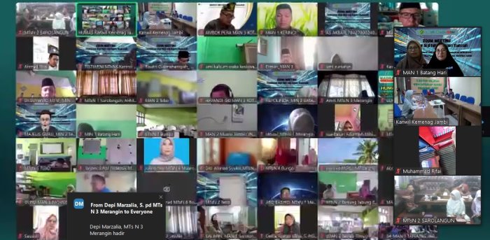 Batang Hari, 4 September 2025 - Dalam rangka meningkatkan kualitas pendidikan, Kepala Madrasah MAN 1 Batang Hari, Drs. Ali Permadi, M.Pd.I, bersama para guru mengikuti Zoom Meeting Pembinaan Guru dan Kepala Madrasah yang diselenggarakan oleh Kanwil Kemenag Provinsi Jambi. Kegiatan ini berlangsung dengan penuh khidmat dan diikuti oleh berbagai madrasah dari seluruh kabupaten/kota di Provinsi Jambi.