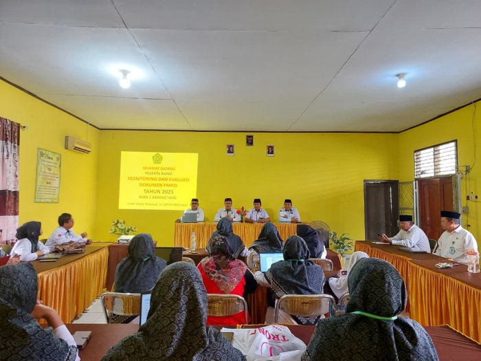 Batang Hari - Kepala Kantor Kementerian Agama Kabupaten Batang Hari, H. Zeifni Ishaq, M.H.I, bersama Kasi Penmad, Aprizal, M.Pd, melakukan kunjungan kerja ke MAN 1 Batanghari dalam rangka pembinaan dan monitoring pembangunan Zona Integritas menuju Wilayah Bebas dari Korupsi (WBK) dan Wilayah Birokrasi Bersih dan Melayani (WBBM), Senin, 15 September 2025.