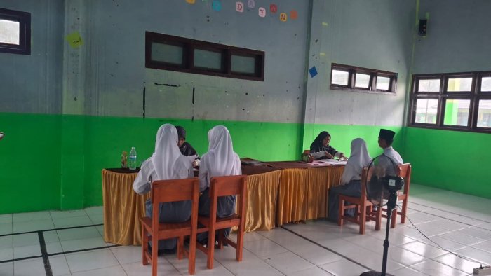Wawancara dipimpin oleh tiga dewan penguji yang kompeten, yaitu Bapak Nurdin, M.Pd. selaku Wakil Kepala Madrasah Bidang Kesiswaan (Wakasis), Ibu Siti Hazar, S.Pd.I. selaku Pembina 1 OSIM, dan Ibu Ika Hesty Anggraini, S.Pd. selaku Pembina 2 OSIM. Mereka bergantian mengajukan pertanyaan yang mendalam, mencakup berbagai aspek, mulai dari program kerja inovatif, kemampuan manajemen organisasi, hingga cara menyelesaikan konflik dan menghadapi tantangan di lingkungan sekolah. Para kandidat diharapkan mampu menunjukkan kesiapan mental dan intelektual mereka untuk mengemban amanah besar ini.
