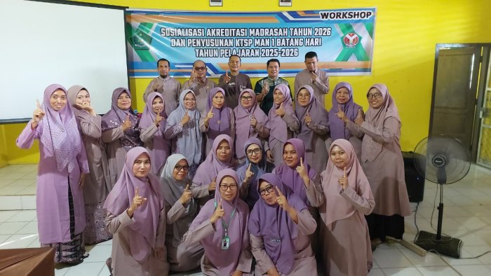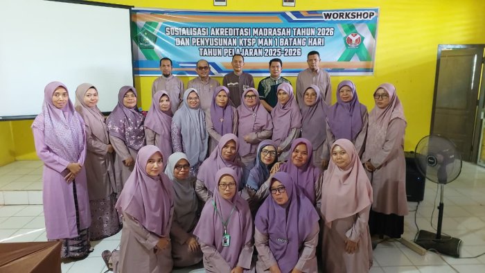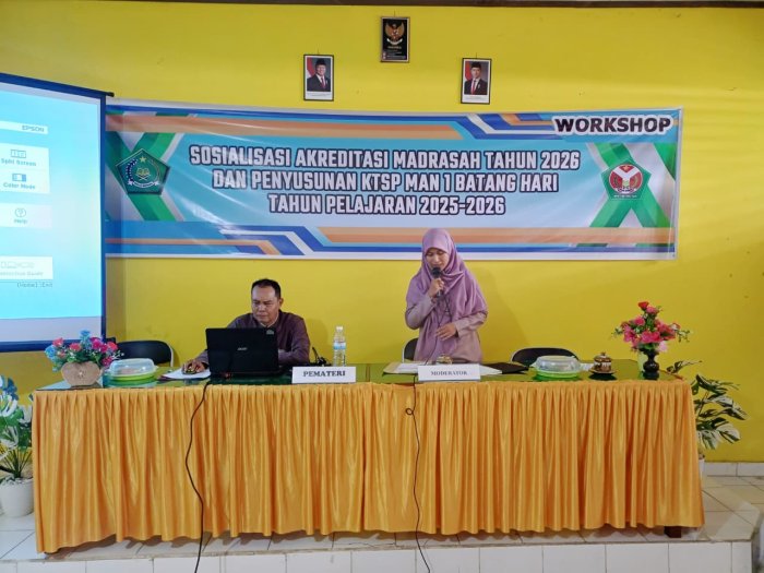 Batang Hari - Workshop Sosialisasi Akreditasi Madrasah Tahun 2026 dan Penyusunan Kurikulum Satuan Pendidikan (KSP) MAN 1 Batang Hari kembali digelar pada 3 Oktober 2025. Kegiatan ini memasuki sesi kedua, menghadirkan Amri Ikhsan, M.Pd, selaku Pengawas Madrasah Kabupaten Batang Hari, sebagai narasumber utama. Sesi ini dipandu oleh Siti Hazar, S.Pd.I, yang berperan sebagai moderator dan memastikan diskusi berjalan lancar serta interaktif.