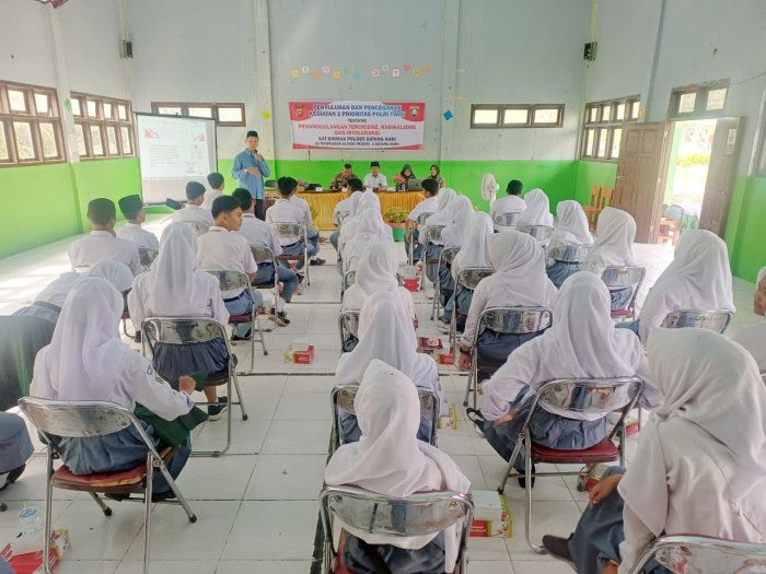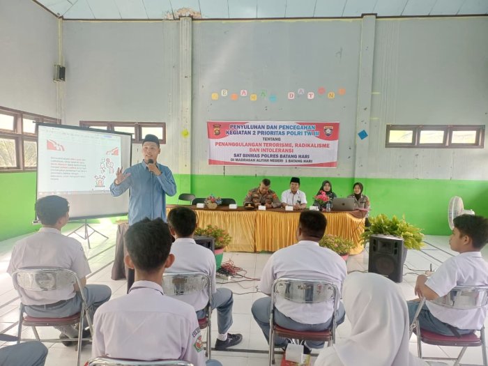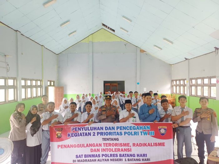 Muara Bulian-Satuan Pembinaan Masyarakat (Sat Binmas) Polres Batang Hari mengadakan penyuluhan mengenai penanggulangan terorisme, radikalisme, dan intoleransi di Madrasah Aliyah Negeri (MAN) 1 Batang Hari pada 13 Oktober 2025. Kegiatan ini merupakan bagian dari upaya mendukung dua prioritas Polri pada Triwulan III, khususnya dalam pencegahan penyebaran paham radikal di kalangan pelajar.