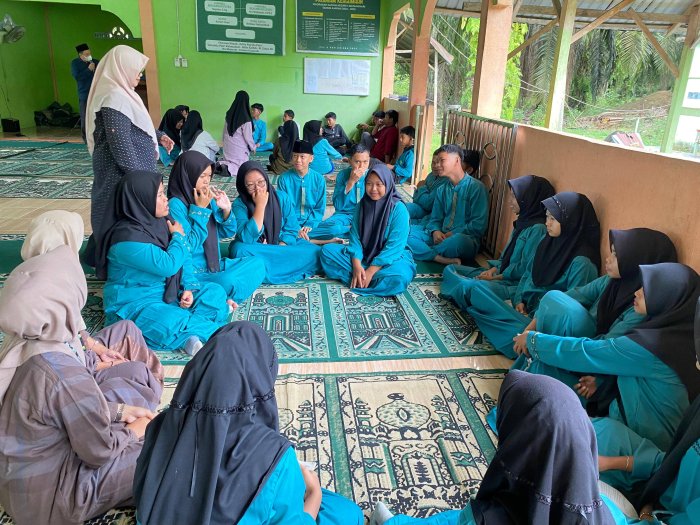 Selain Riska, kegiatan Tahfidz juga didampingi oleh pembimbing sebaya dari kelas XI B. Untuk siswa laki-laki, pembimbingnya adalah Irfan A. Fada'il dan Muhammad Zidan Ali. Sementara itu, siswa perempuan dibimbing oleh Tania Cahya Nabila dan Gina Septia Qoro. Kehadiran pembimbing sebaya ini menciptakan suasana belajar yang lebih akrab dan mendukung, sehingga siswa merasa lebih nyaman dalam menghafal dan memahami Al-Qur'an.