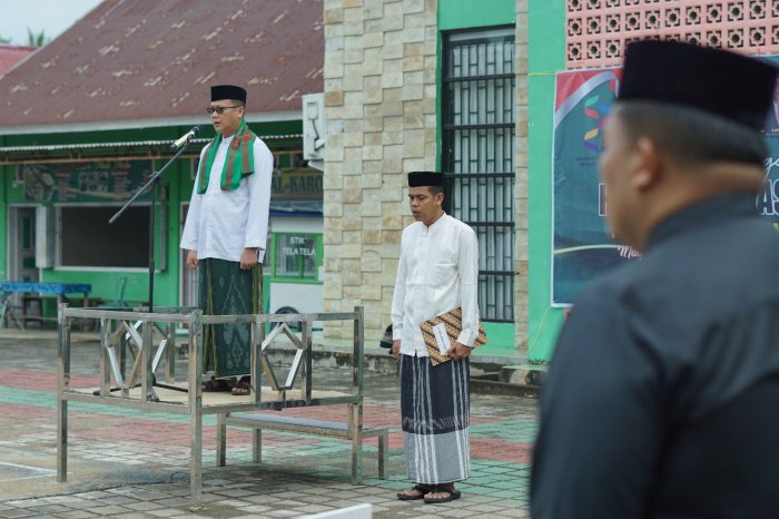 Kegiatan peringatan Hari Santri Nasional di Kantor Kementerian Agama Kabupaten Batang Hari berlangsung dalam bentuk upacara yang khidmat dan penuh makna. Upacara ini diikuti oleh berbagai elemen masyarakat, termasuk para santri, guru, dan pegawai Kementerian Agama. Suasana upacara berlangsung tertib, dengan peserta mengikuti rangkaian acara secara saksama.