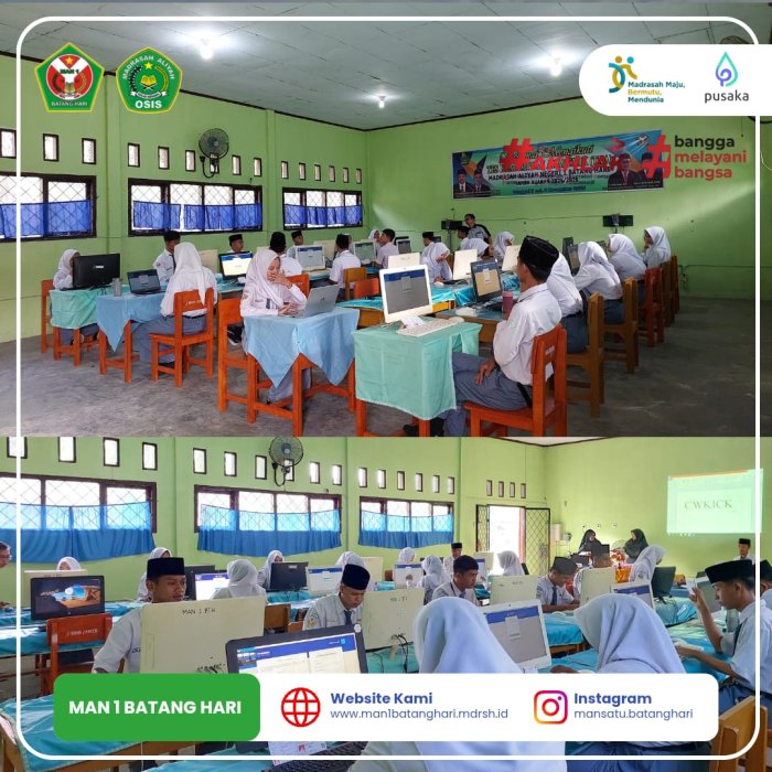 Muara Bulian, Senin, 3 November 2025 - MAN 1 Batang Hari melaksanakan Tes Kompetensi Akademik (TKA) hari pertama untuk peserta didik kelas XII tahun 2025. Ujian ini dilaksanakan sebagai bagian dari asesmen madrasah dalam rangka memetakan kemampuan akademik siswa pada tiga mata pelajaran wajib, yaitu Bahasa Indonesia, Matematika, dan Bahasa Inggris. Pelaksanaan berlangsung tertib dan penuh semangat di ruang-ruang ujian yang telah disiapkan oleh panitia madrasah.