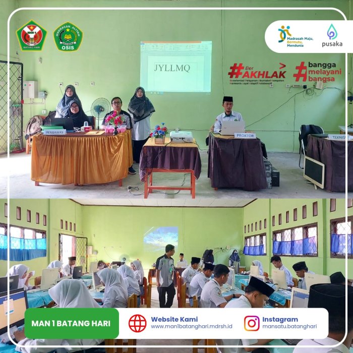 Pada sesi pertama ini, pengawas silang berasal dari MAN 3 Batang Hari, yaitu Sanawati, S.Pd.I. Beliau bertugas memastikan seluruh tahapan pelaksanaan ujian berjalan sesuai aturan dan prinsip kejujuran akademik. Sanawati menyampaikan bahwa suasana ruang ujian di MAN 1 Batang Hari sangat kondusif dan peserta terlihat fokus mengerjakan soal-soal yang diberikan. "Disiplin dan ketenangan siswa patut diapresiasi,"tuturnya.
