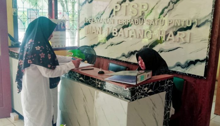 Batang Hari-Madrasah Aliyah Negeri (MAN) 1 Batang Hari terus berkomitmen meningkatkan kualitas layanan kepada masyarakat melalui Pelayanan Terpadu Satu Pintu (PTSP). Dengan mengusung konsep pelayanan ceria, PTSP Madrasah Aliyah Negeri 1 Batang Hari hadir memberikan layanan yang ramah, cepat, dan transparan bagi seluruh warga madrasah maupun masyarakat umum.