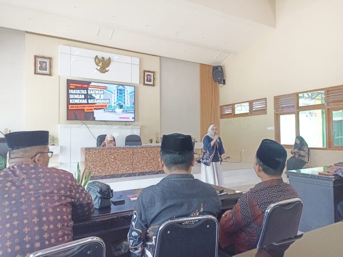 Batang Hari, 21 Januari 2026-Kepala Madrasah Aliyah Negeri (MAN) 1 Batang Hari yang diwakili oleh Wakil Kepala Madrasah Bidang Hubungan Masyarakat, Yofi Tri Fadila, S.Pd, dan dua orang siswa, Ika Khairani dan Eca Nurhasanah, menghadiri kegiatan Sosialisasi Fakultas Dakwah Universitas Islam Negeri (UIN) Sultan Thaha Saifuddin Jambi. Kegiatan ini berlangsung pada pukul 13.00 WIB bertempat di Aula Kantor Kementerian Agama Kabupaten Batang Hari.