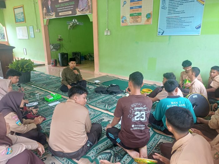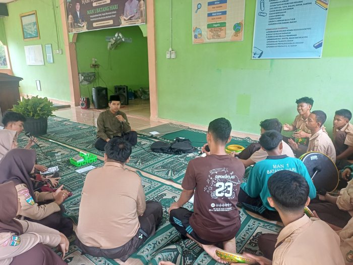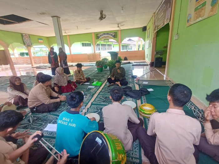 Muara Bulian, 22 Januari 2026- Tim Hadroh Al Mahabbah MAN 1 Batang Hari melaksanakan latihan intensif sebagai persiapan untuk memperingati Isra Mi'raj Nabi Muhammad SAW 1447 H. Latihan ini dipimpin oleh pelatih, M. Rahman Junaidi, S.Pd., yang berasal dari Pondok Pesantren Al Fath Jembatan Mas.