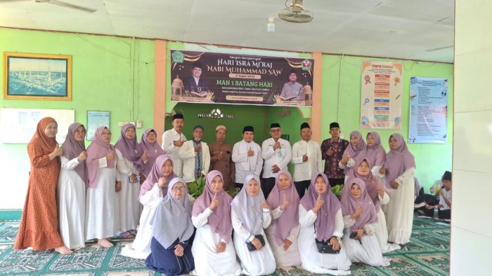 Batang Hari-Madrasah Aliyah Negeri (MAN) 1 Batang Hari melaksanakan Peringatan Isra Miraj Nabi Muhammad Shallallahu Alaihi Wasallam pada Jumat, 23 Januari 2026, bertempat di Mushalla Al Ikhlas MAN 1 Batang Hari. Kegiatan ini diikuti oleh seluruh warga madrasah yang terdiri dari peserta didik, tenaga pendidik, serta tenaga kependidikan.