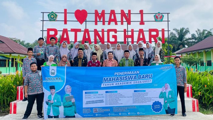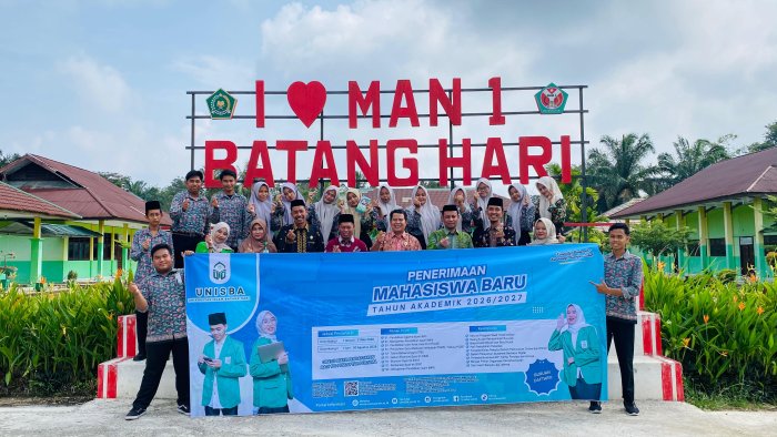 Batang Hari-Universitas Islam Batang Hari (UNISBA) mengadakan sosialisasi Penerimaan Mahasiswa Baru (PMB) Tahun Akademik 2026/2027 di Madrasah Aliyah Negeri (MAN) 1 Batang Hari pada Rabu, 25 Februari 2026. Kegiatan ini ditujukan kepada siswa kelas XII sebagai upaya memberikan informasi menyeluruh mengenai kesempatan melanjutkan pendidikan ke perguruan tinggi, khususnya di UNISBA.