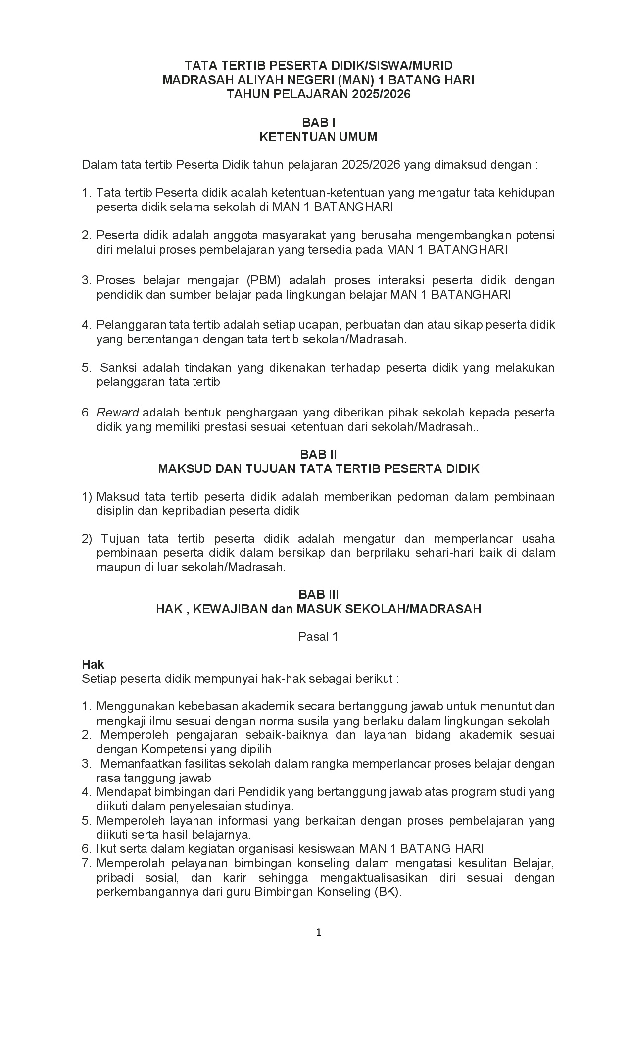 Selamat Datang di Website Resmi MAN 1 Batang Hari