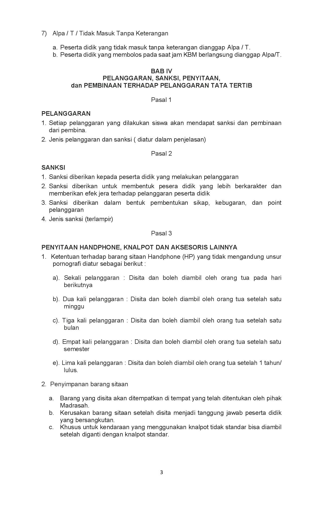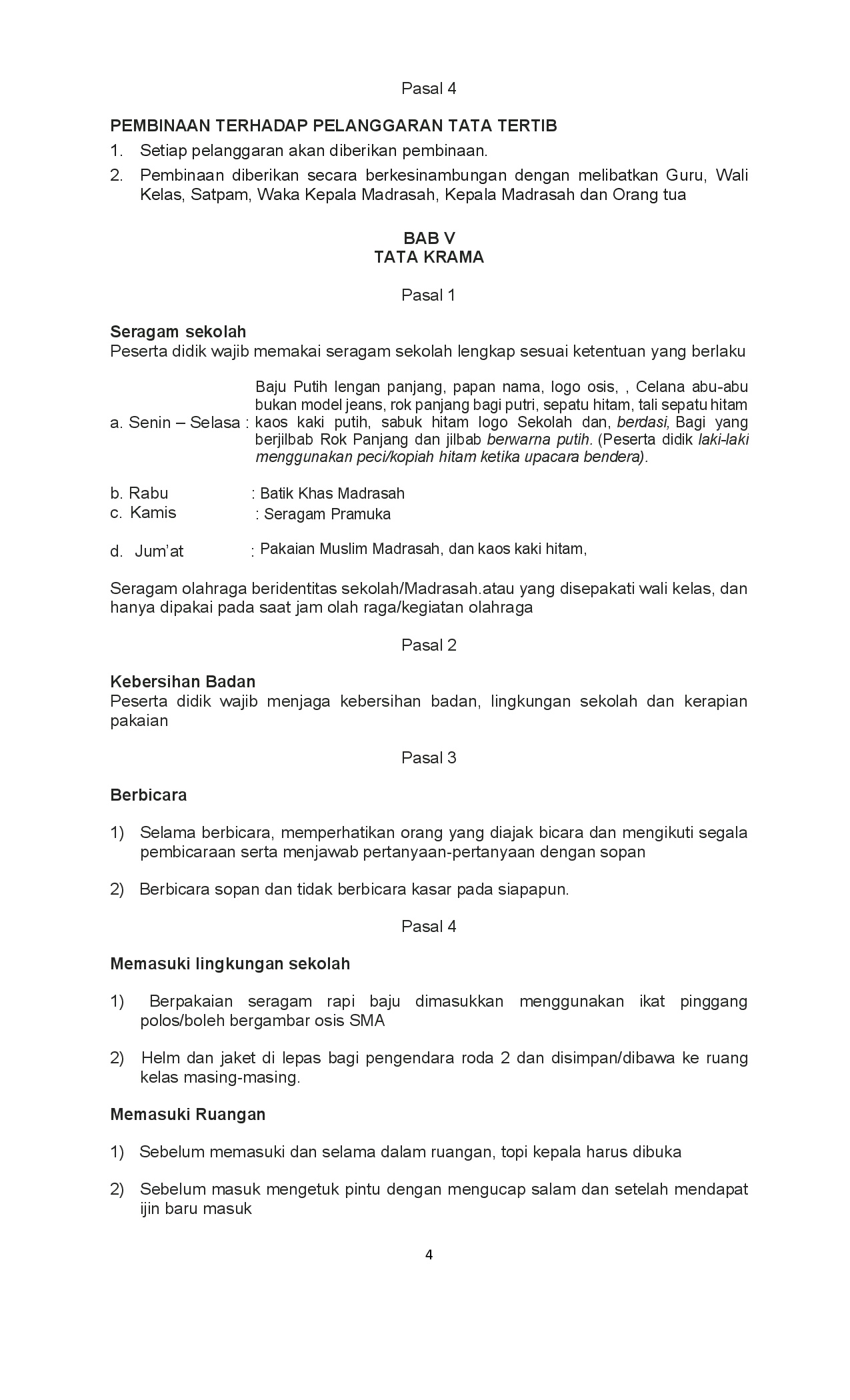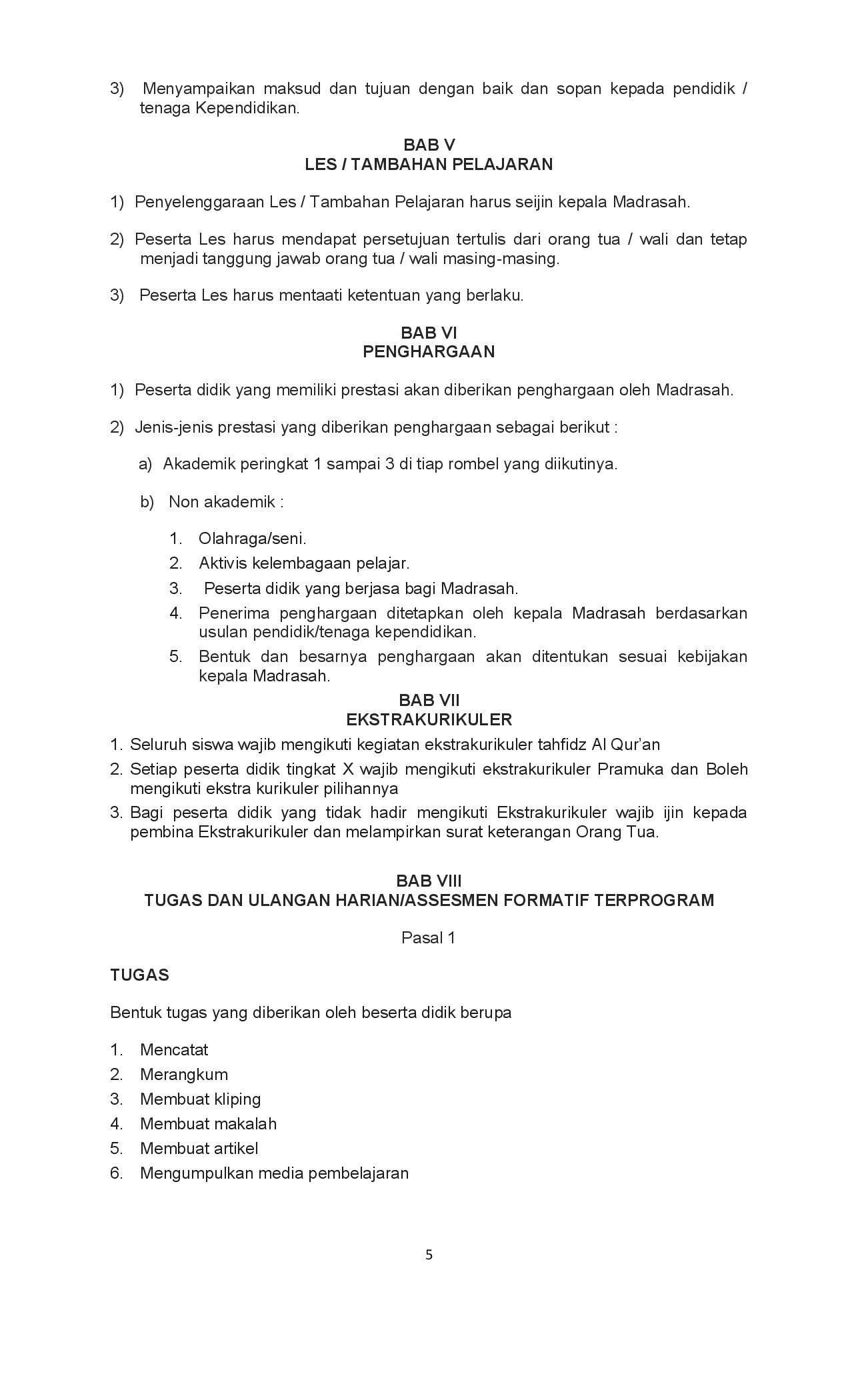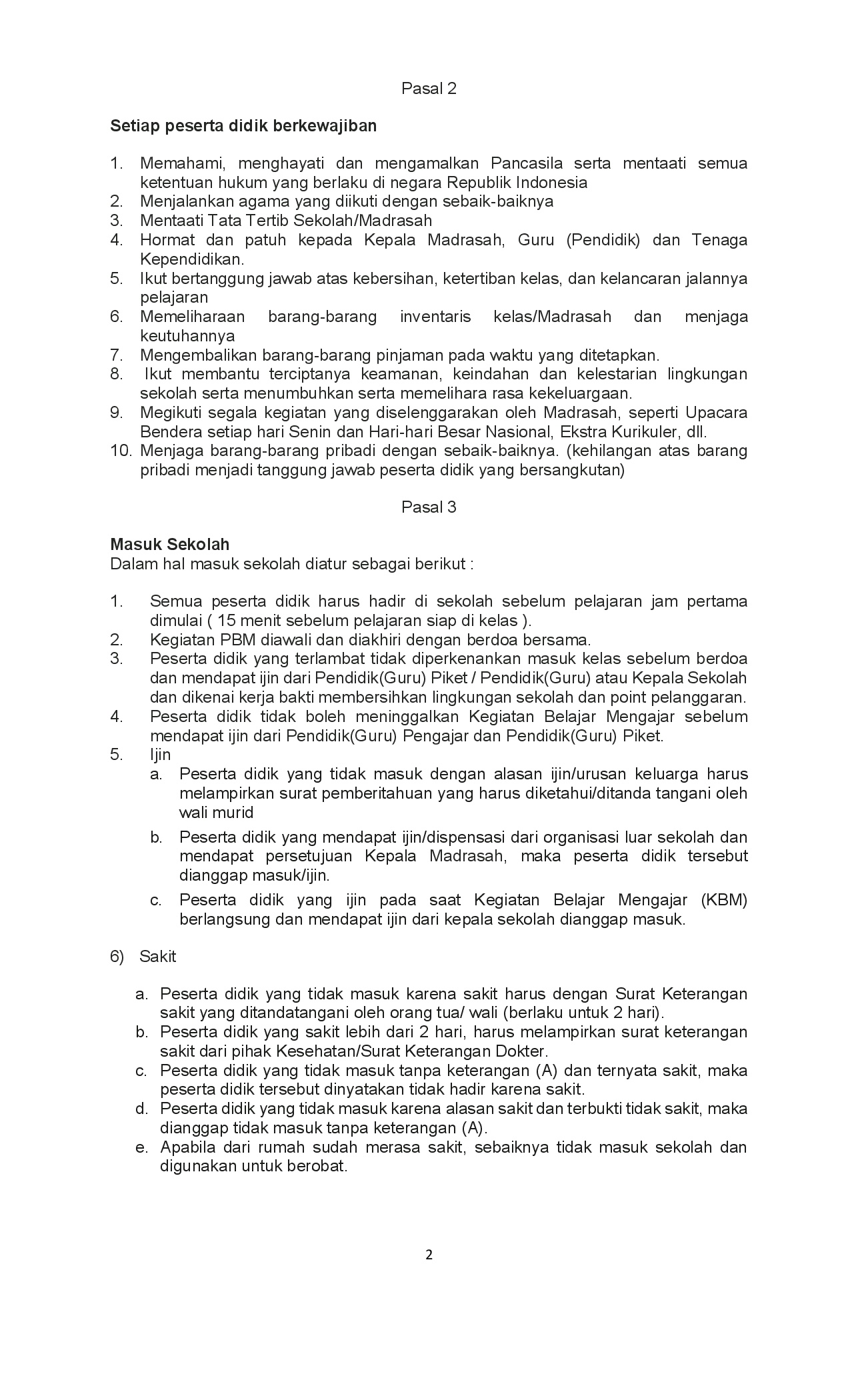 Tata Tertib Madrasah